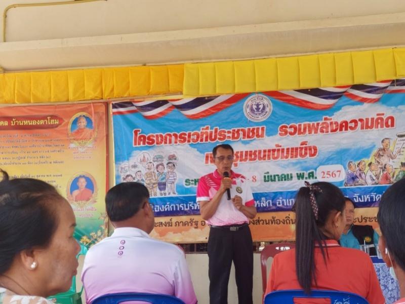 วันที่ 7 มีนาคม 2567 เวลา 13.00 –16.00 ลงพื้นที่ บ้านหนองตาโฮม หมู่ที่ 2 ณ ที่ทําการกองทุนร้านค้าชุมชน ประชาชนเข้าร่วมแสดงความคิดเห็น ประมาณ 30 คน โดยมีการเสนอโครงการ เช่น โครงการปรับปรุงซ่อมแซมถนน แอสฟัลต์คอนกรีตทับคอนกรีตในหมู่บ้าน วางท่อระบายน้ำคอนกรีตเสริมเหล็กภายในหมู่บ้าน, โครกงารก่อสร้างถนนคอนกรีตเสริมเหล็ก , โครงการก่อสร้างถนนลูกรัง, โครงการปรับปรุงระบบน้ำประปาหมู่บ้าน , โครงการปรับปรุงระบบหอกระจายข่าว เป็นต้น