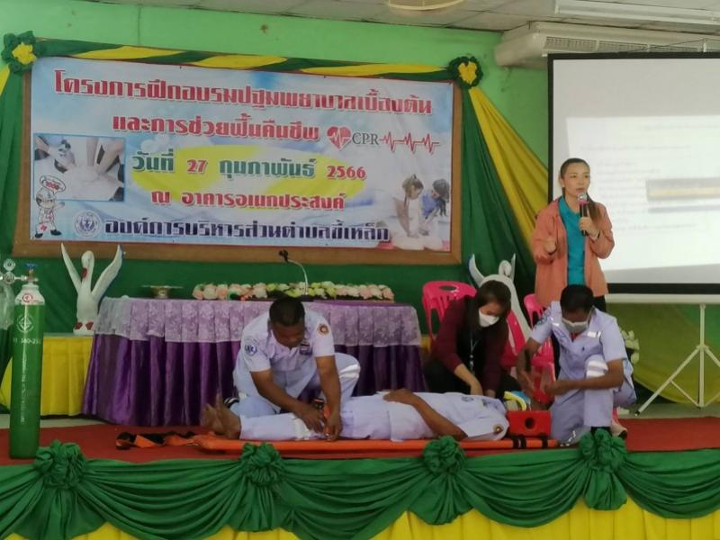 รายละเอียด : วันที่ 27 เดือนกุมภาพันธ์ พ.ศ.2566 องค์การบริหารส่วนตำบลขี้เหล็ก ได้จัดโครงการฝึกอบรมปฐมพยาบาลเบื้องต้นและการช่วยฟื้นคืนชีพ (CPR) ซึ่งเป็นการปฐมพยาบาลเบื้องต้นสามารถช่วยเหลือบุคคลใกล้ตัวได้อย่างปลอดภัยก่อนถึงโรงพยาบาลได้