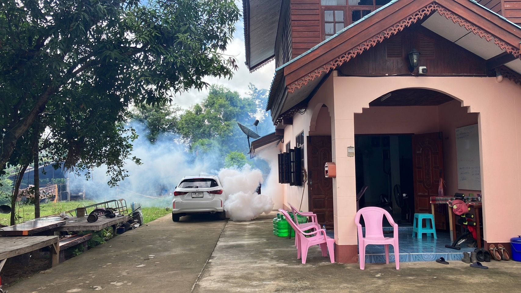 กิจกรรมฉีดพ่นหมอกควัน กำจัดแหล่งเพาะพันธ์ุลูกน้ำยุงลาย เพื่อป้องกันโรคไข้เลือดออก ให้กับพื้นที่โซน รพ.สต.บ้านยางเฌอ