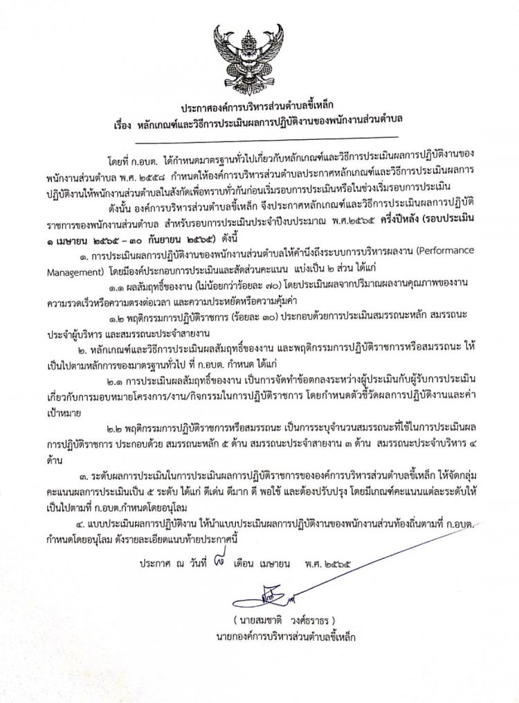 ประกาศองค์การบริหารส่วนตำบลขี้เหล็ก เรื่อง หลักเกณฑ์และวิธีการประเมินผลการปฏิบัติงานของพนักงานส่วนตำบล