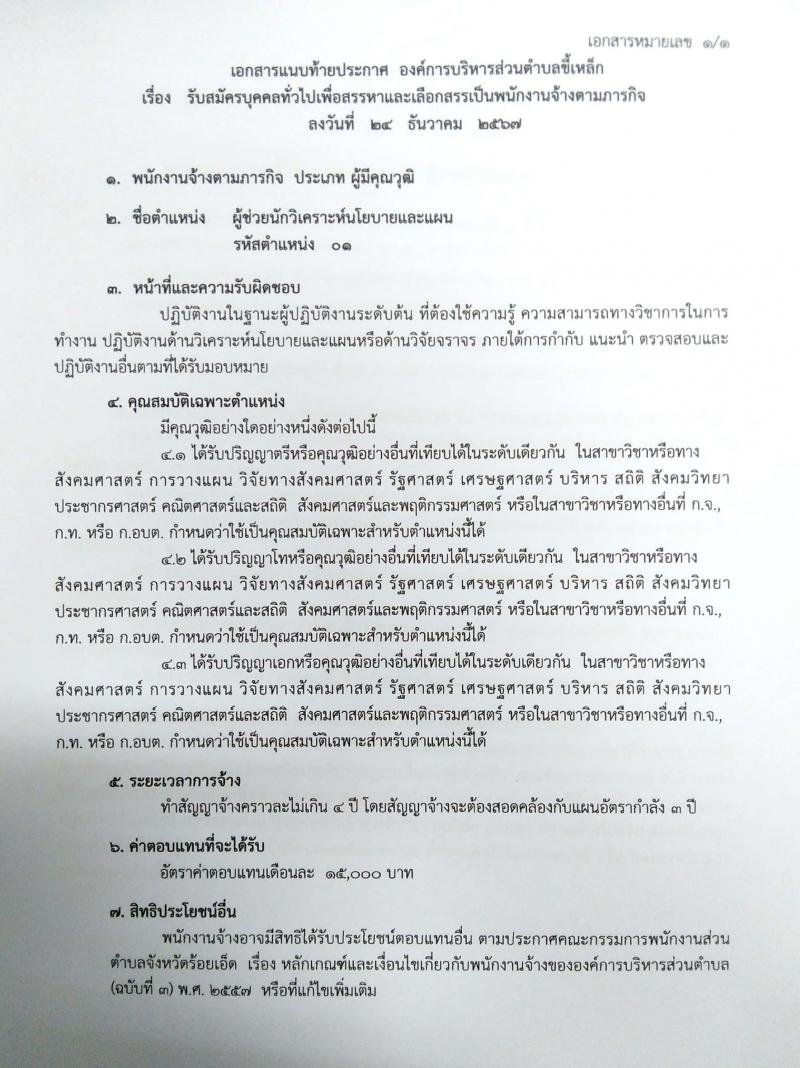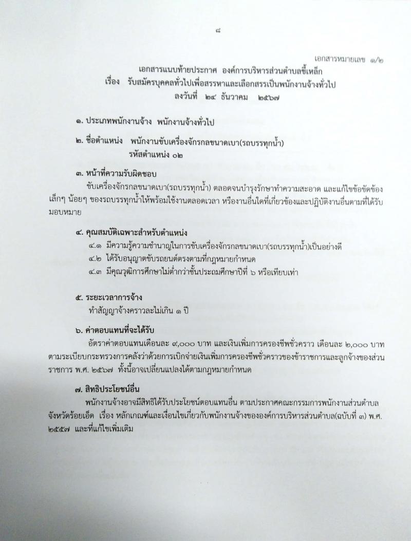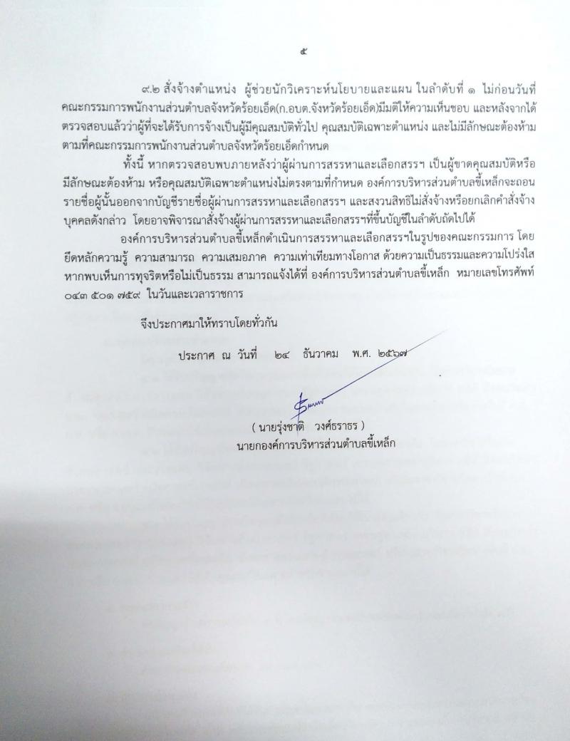 ประกาศรับสมัครบุคคลเพื่อสรรหาและเลือกสรรเป็นพนักงานจ้างขององค์การบริหารส่วนตำบลขี้เหล็ก