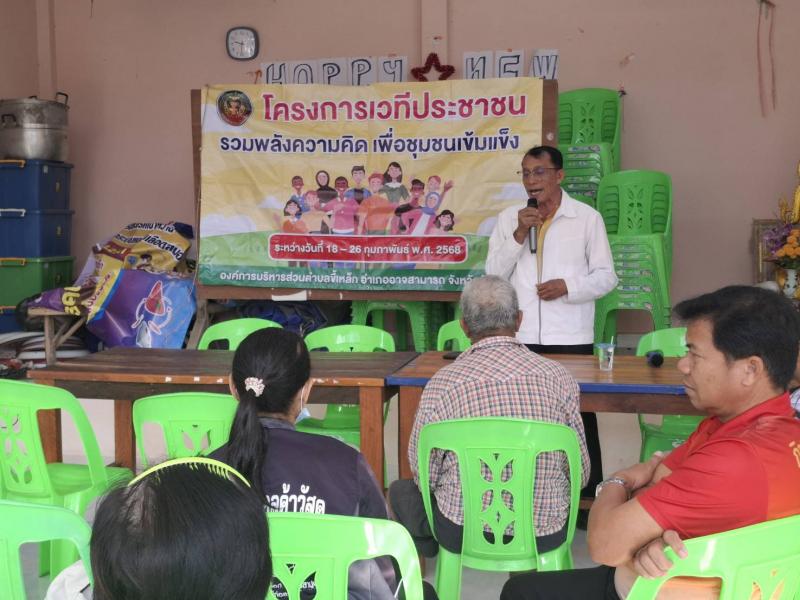 รายละเอียด : ในระหว่างวันที่ 18 – 26 กุมภาพันธ์ 2568 คณะผู้บริหาร ฝ่ายกิจการสภา พร้อมด้วยพนักงานองค์การบริหารส่วนตำบลขี้เหล็ก ได้ลงพื้นที่ตามโครงการเวทีประชาชน รวมพลังความคิด เพื่อชุมชนเข้มแข็ง ทั้งนี้เพื่อรับฟังความคิดเห็น รวบรวมปัญหา ข้อมูลเกี่ยวกับชีวิตความเป็นอยู่ ความต้องการของประชาชนเพื่อนำมาวางแผน ในการพัฒนาและบรรจุในแผนพัฒนาท้องถิ่น เพื่อส่งเสริม สนับสนุนความเข้มแข็งของคนในชุมชน ในการยกระดับคุณภาพชีวิตของตนเอง เพื่อสร้างความรู้ ความเข้าใจแก่ประชาชนเกี่ยวกับการบริหารงานทั่วไป แผนและนโยบาย โครงการสำคัญขององค์การบริหารส่วนตำบลขี้เหล็กตามหนังสือสั่งการของกระทรวงมหาดไทย เพื่อรายงานผลการดำเนินงานตามแผนดำเนินงาน ประจำปีงบประมาณ 2567 และ ปี 2568 เพื่อให้คำปรึกษาในปัญหาข้อขัดข้องต่าง ๆ ที่เกี่ยวกับระเบียบการปฏิบัติงานของหน่วยงาน และเรื่องอื่นๆ ในการจัดทำโครงการดังกล่าวได้รับความสนใจจากประชาชนทั้ง 12 หมู่บ้านในเขตพื้นที่ตำบลขี้เหล็กในการร่วมเสนอประเด็นปัญหา ประเด็นการพัฒนาตำบล ข้อเสนอแนะในการให้บริการประชาขน โดยเสนอให้ผู้บริหาร พนักงานส่วนตำบลได้นำมาวางแผนในการพัฒนาตำบลขี้เหล็กให้สอดคล้องนโยบายของรัฐบาล ยุทธศาสตร์จังหวัดร้อยเอ็ด วิสัยทัศน์และยุทธศาสตร์ขององค์การบริหารส่วนตำบลขี้เหล็ก อำเภออาจสามารถ จังหวัดร้อยเอ็ดต่อไป