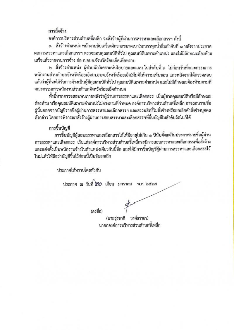 ประกาศองค์การบริหารส่วนตำบลขี้เหล็ก เรื่อง ผลการสรรหาและเลือกสรรพนักงานจ้าง พ.ศ. 2568