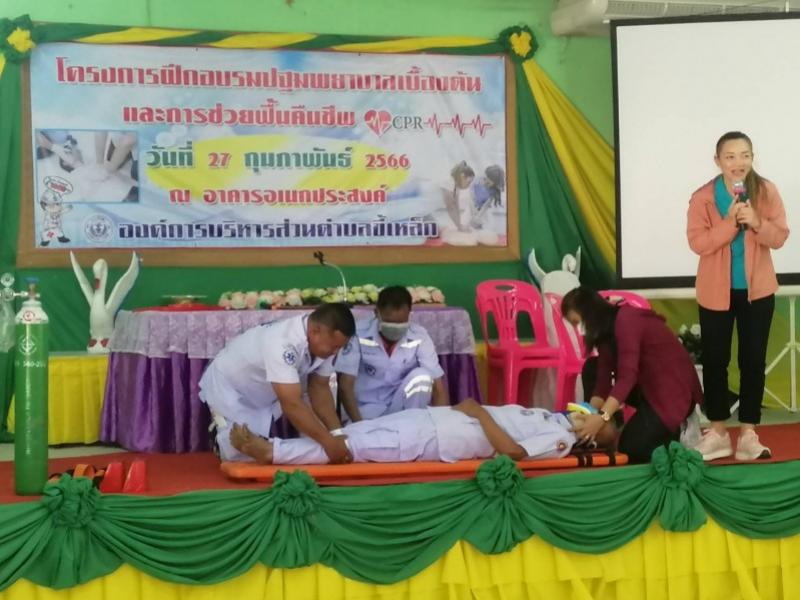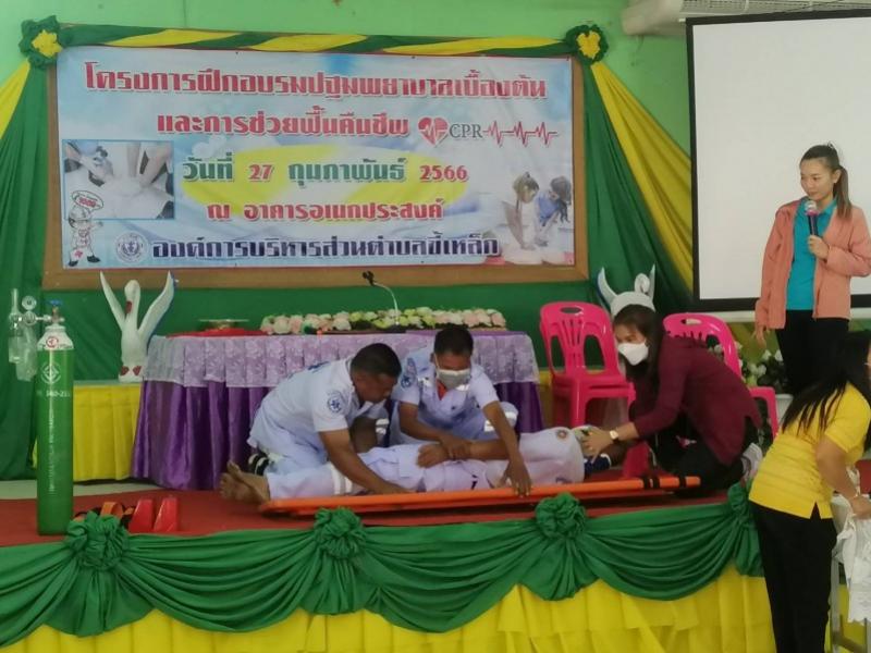 รายละเอียด : วันที่ 27 เดือนกุมภาพันธ์ พ.ศ.2566 องค์การบริหารส่วนตำบลขี้เหล็ก ได้จัดโครงการฝึกอบรมปฐมพยาบาลเบื้องต้นและการช่วยฟื้นคืนชีพ (CPR) ซึ่งเป็นการปฐมพยาบาลเบื้องต้นสามารถช่วยเหลือบุคคลใกล้ตัวได้อย่างปลอดภัยก่อนถึงโรงพยาบาลได้