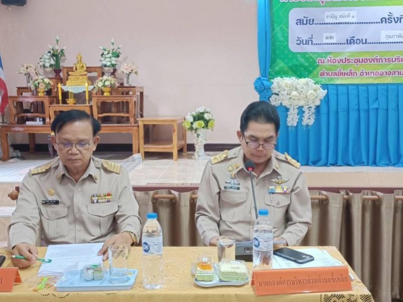 รายละเอียด : วันจันทร์ที่ 12 กุมภาพันธ์ 2567 ประชุมสภาสมัยสามัญ สมัยที่1 ครั้งที่ 2 ประจำปี พ.ศ.2567 นำโดยนายอำนาจ จิตไพศาล ประธานสภาองค์การบริหารส่วนตำบลขี้เหล็ก เพื่อขอความเห็นชอบจ่ายขาดเงินสะสม ครั้งที่1 ประจำปีงบประมาณ พ.ส.2567 ต่อสภาองค์การบริหารส่วนตำบลขี้เหล็ก